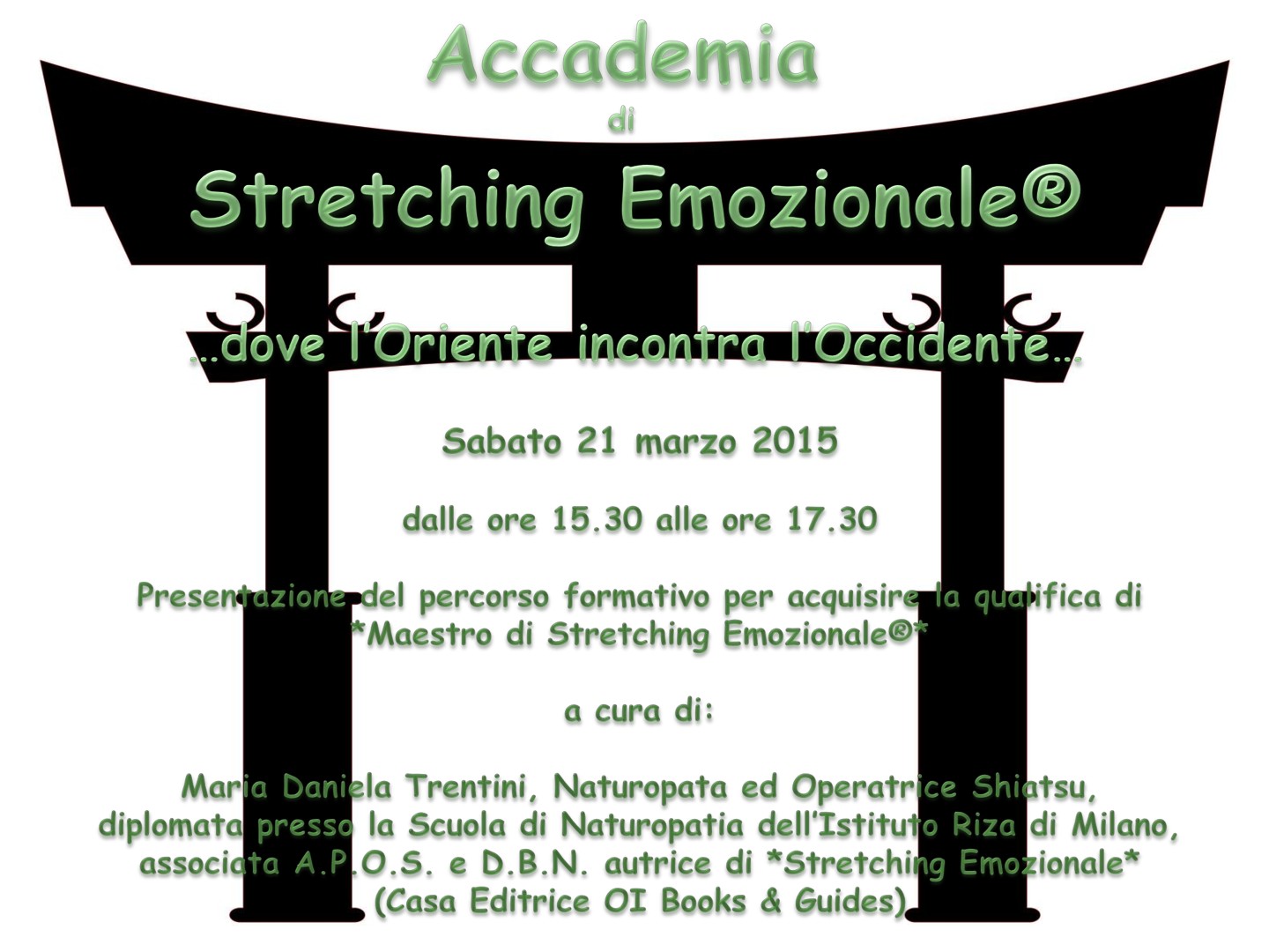 Lo “STRETCHING EMOZIONALE® è mio marchio registrato e argomento della mia guida, già uscita in formato eBook: “Stretching Emozionale” – Ritrova l’armonia delle tue funzioni vitali e aumenta l’energia di corpo e spirito – di Daniela Trentini – Casa Editrice OI Books & Guides.